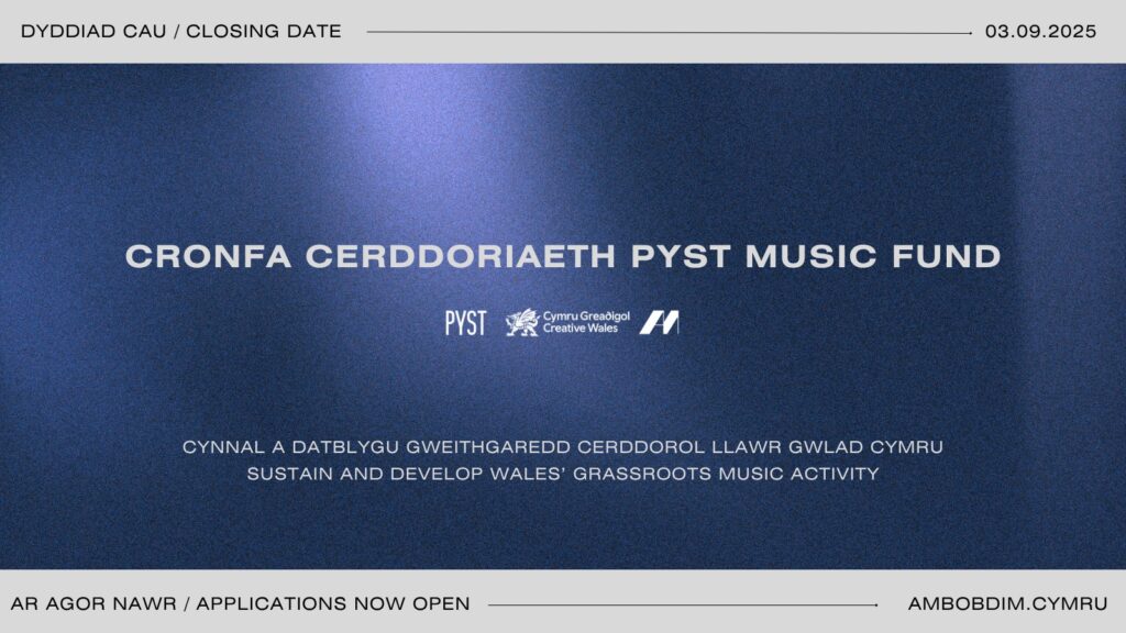 FFURFLEN GAIS CANLLAWIAU Heddiw, mae’r cwmni dosbarthu a hyrwyddo cerddoriaeth PYST yn cyhoeddi cronfa beilot newydd wedi’i anelu at gynnal a datblygu gweithgaredd cerddoriaeth llawr gwlad yng Nghymru. Mae gweithgaredd cerddoriaeth yng Nghymru yn ffynnu, fel profir gan y nifer gynyddol o labeli recordio, ac mae’r gronfa hon yn anelu i danategu sefydliadau nad oes cyfleoedd ariannu […]
