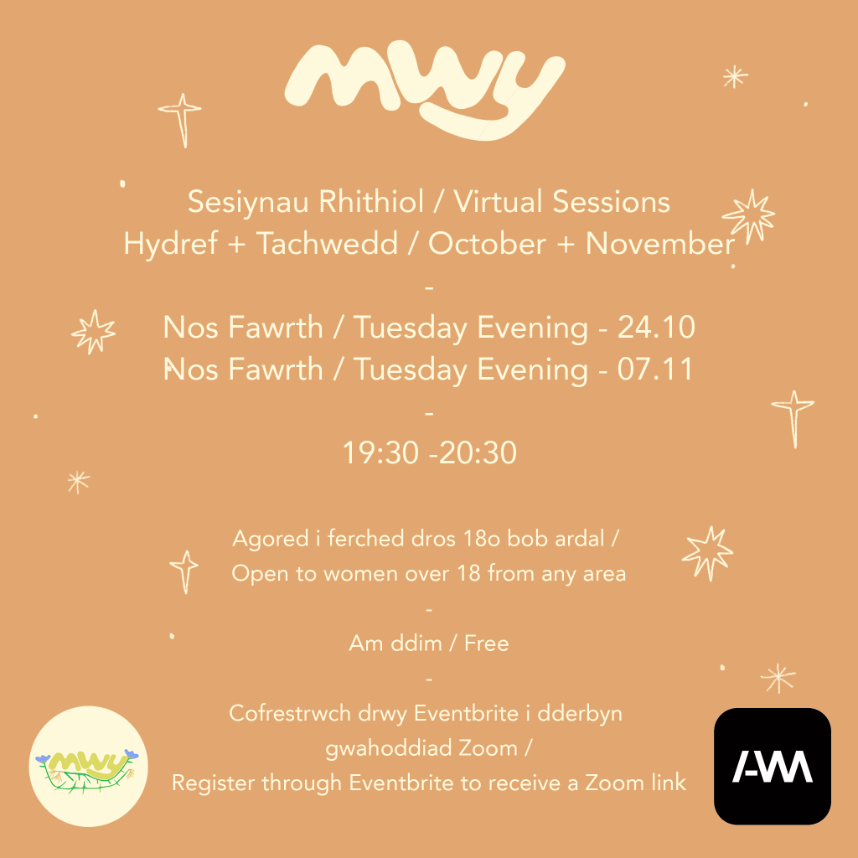 A creative project that offers a safe space for women over 18 years old to promote wellbeing through the Welsh Language at Porthi Dre, Caernarfon with Sioned Medi Evans and Iola Ynyr.