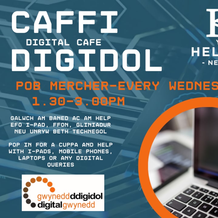 Caffi Digidol Yr Heliwr Digital Cafe
