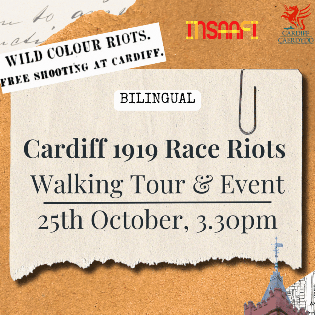 ​The tour will start in the centre of Cardiff and end in Cardiff Bay, investigating the complex social and economic conditions of the post-WWI era that led to widespread racist violence. We will examine key historical historical sites and accounts to honour the experiences and resilience of our communities affected by these events, shedding light on a pivotal moment in the history of race relations in Wales and the UK.