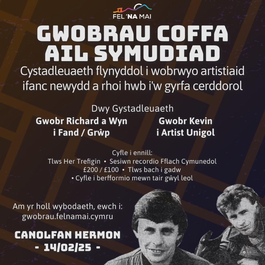 Unrhyw fand neu artist sy’n gymharol newydd. Ydych chi’n fand ysgol? Yn ffrindiau coleg? Yn artist unigol sydd eisiau cyrraedd cynulleidfa? Hoffech chi berfformio mewn tair gŵyl yn 2025 ac ennill gwobr ariannol? Ai chi fydd yr enw nesaf ar un o’r tlysau? Profiadol neu hollol ddi-brofiad, mae’r gystadleuaeth yn agored i chi. Mae Gwobrau Coffa Ail Symudiad yn chwilio am sŵn cyfredol a sŵn i’r dyfodol.