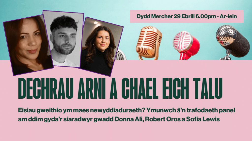 Byddwch yn clywed gan newyddiadurwyr a gweithwyr proffesiynol y cyfryngau ledled Cymru wrth iddynt rannu eu profiadau, yr heriau y maent wedi’u hwynebu, a’r camau ymarferol y maent wedi’u cymryd i greu gyrfaoedd cynaliadwy. Byddwn hefyd yn archwilio llwybrau amgen i newyddiaduraeth, gan gynnwys gwaith llawrydd, cyfryngau annibynnol, a llwyfannau dan arweiniad y gymuned.